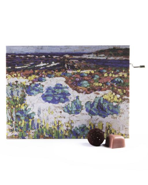 Arvo Pärdi Ukuaru valsiga kommikarp, mida illustreerib Konrad Mägi maal (Saaremaa. Etüüd). Karbis on 16 käsitööšokolaadi.
